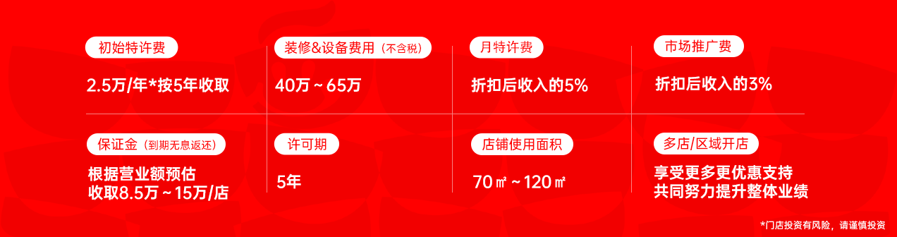 经品牌许可,区域加盟商可在特许区域内自行进行多店开拓经营,并可以发展区域内的其他第三方作为二级加盟商进行开店,享受总部对于区域加盟商或开拓二级加盟商的相应优惠扶持政策。